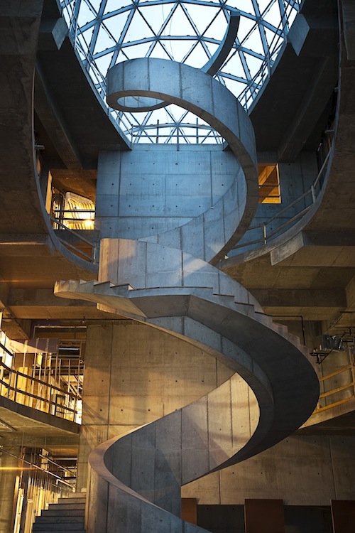 As for the inside, 66,000 square feet and 3 floors of huracaine 5 resistance structures, but the real eye catcher here is the staircase, which really takes Dalí's advice and pushes it to the extreme, defying structure and even gravity a bit. The staircase runs along all 3 floors of the space and takes the shape of a DNA molecule, another fetish of the man. To me, it looks like it was inspired on his funky mustache.